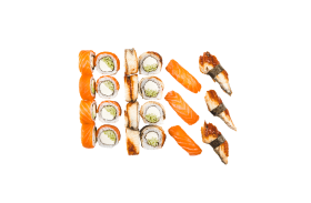 1200 г - нігірі лосось, філадельфія з лососем, нігірі вугор, філадельфія з вугром