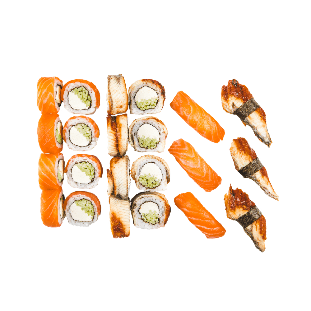 - нігірі лосось, філадельфія з лососем, нігірі вугор, філадельфія з вугром