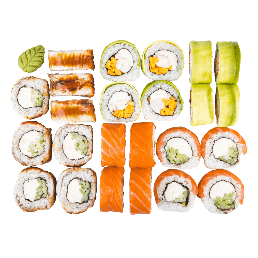 - філадельфія з лососем, філадельфія з вугром, зелений дракон